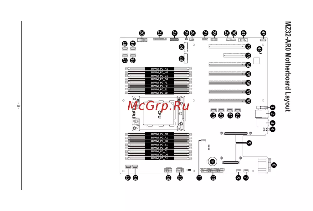 Gigabyte MZ32-AR0 (rev. 1.0) [6/146] Mz32 ar0 motherboard layout