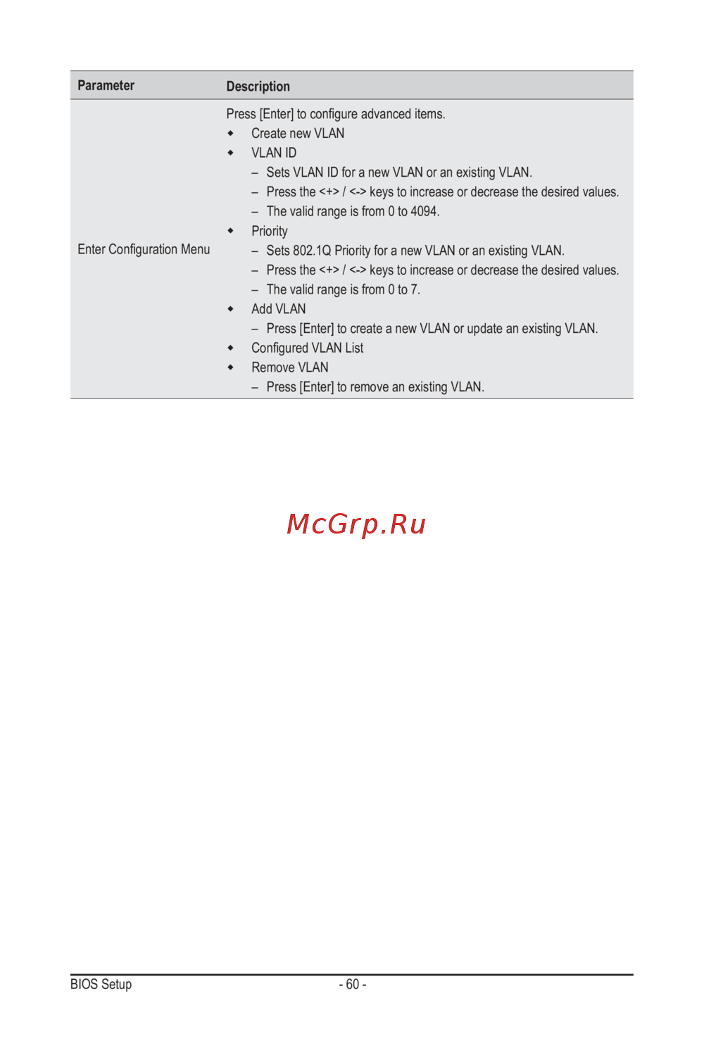 – Press [Enter] to create a new VLAN or update an existing VLAN.