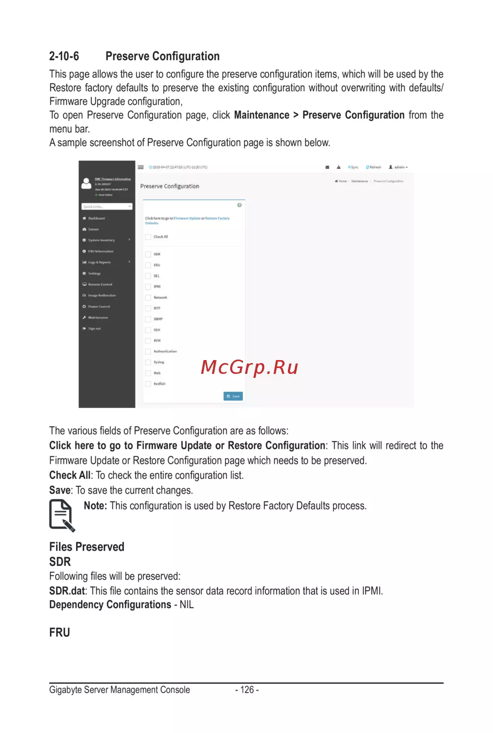 Gigabyte MZ32-AR0 (rev. 1.0) — управление конфигурацией сервера: сохранение и восстановление [126/134]
