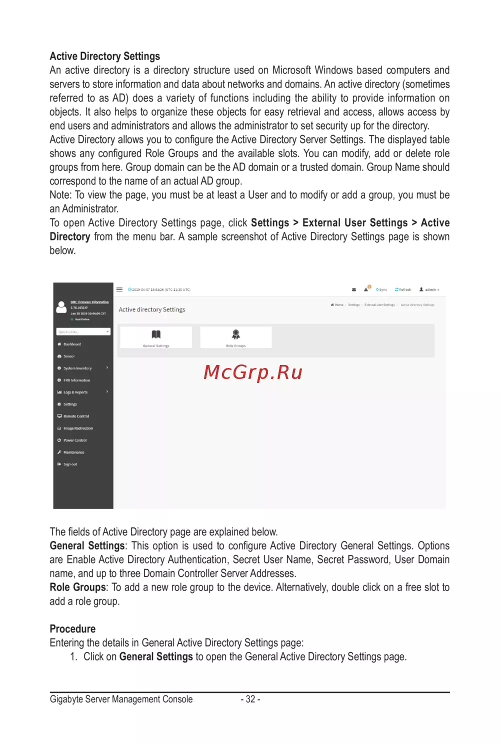 Gigabyte MZ32-AR0 (rev. 1.0) Руководство пользователя GIGABYTE Management Console _AMI_ онлайн [32/134] 534551
