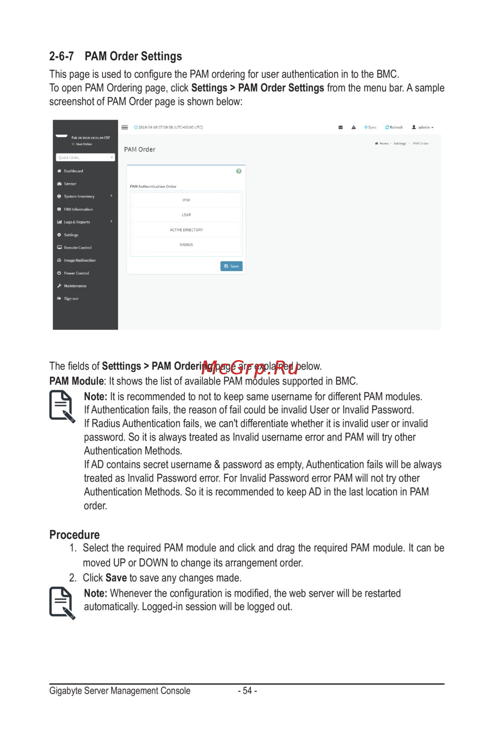 ThispageisusedtocongurethePAMorderingforuserauthenticationintotheBMC.