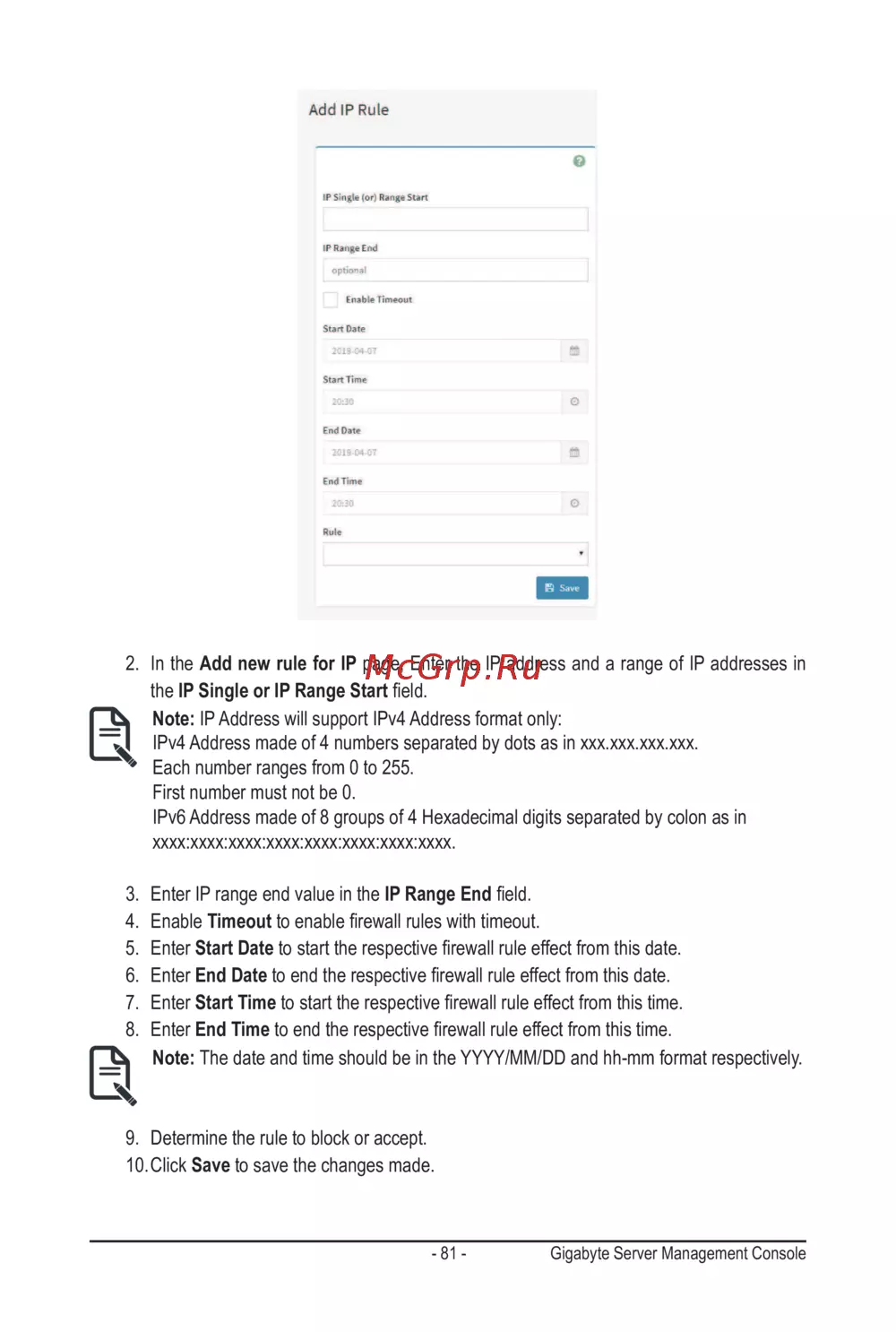 2. In the Add new rule for IP page, Enter the IP address and a range of IP addresses in