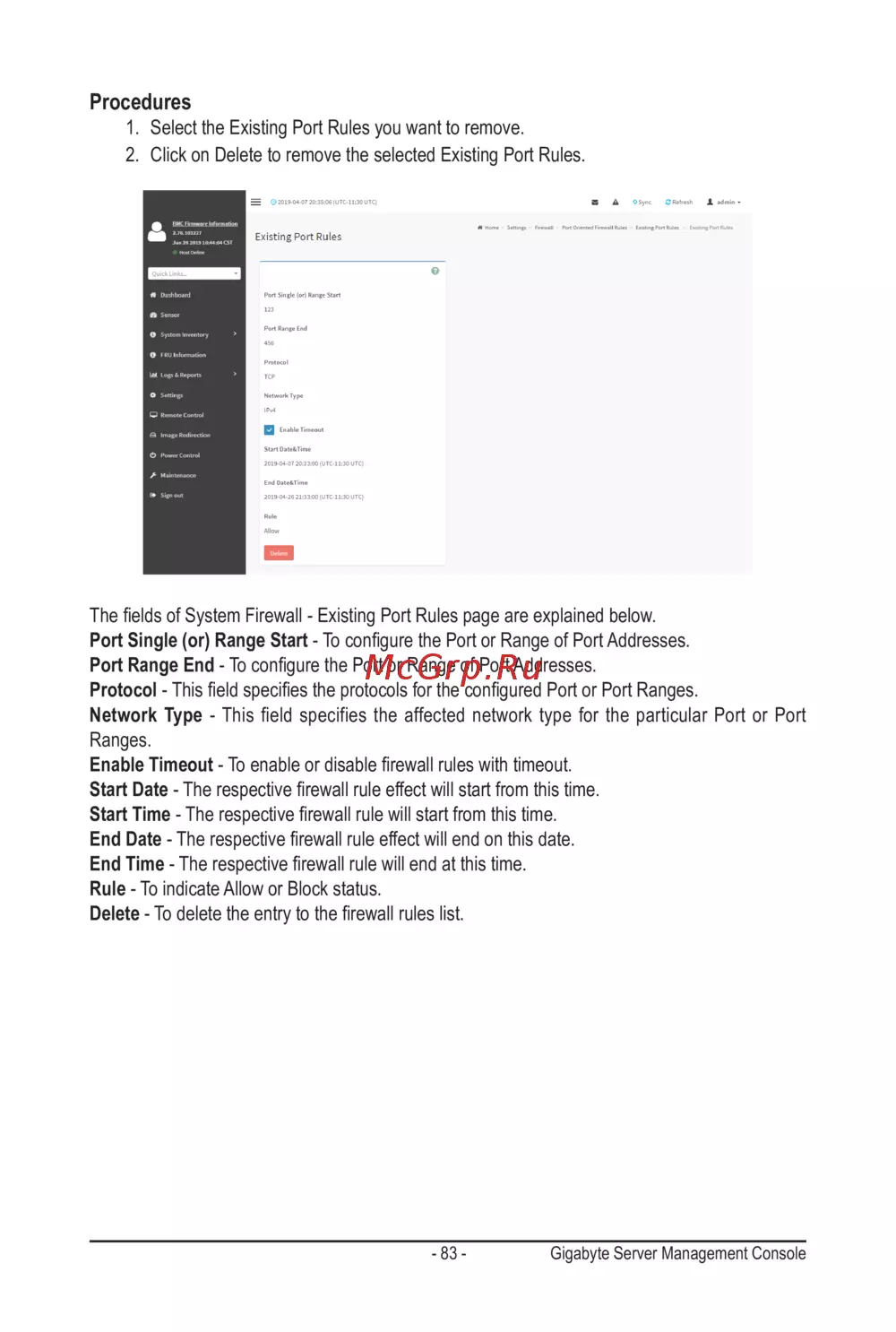 TheeldsofSystemFirewall-ExistingPortRulespageareexplainedbelow.