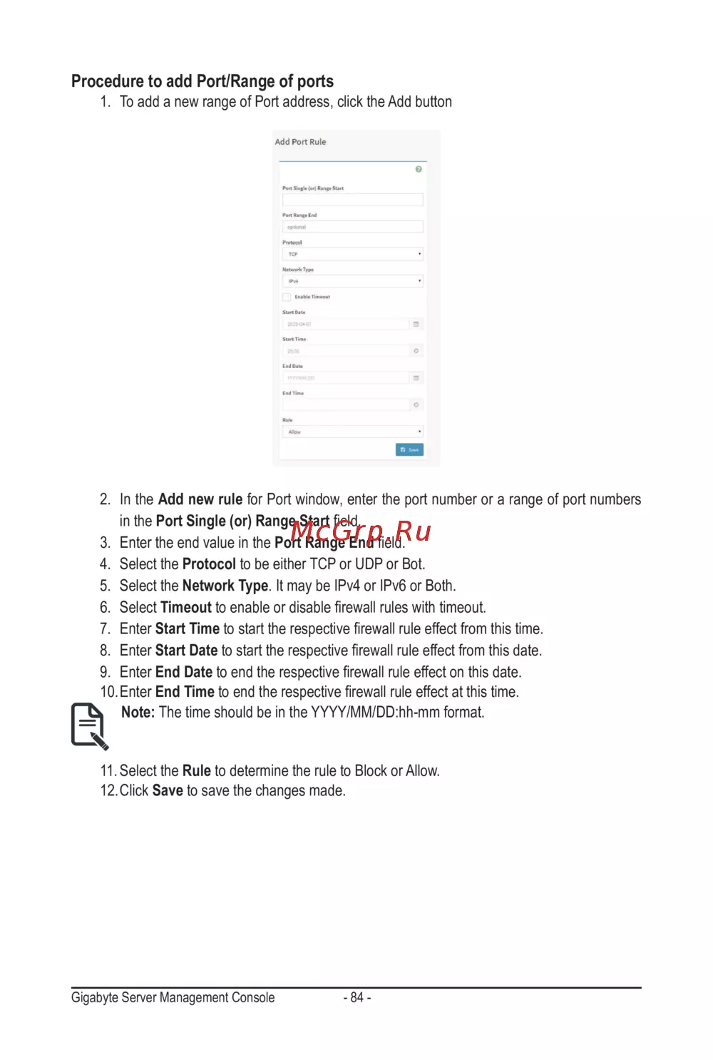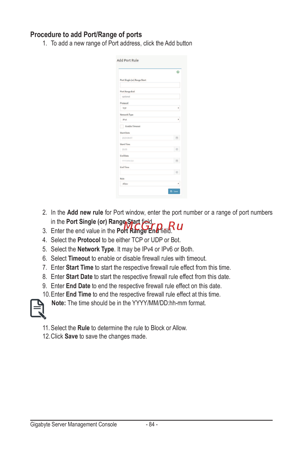 ![Gigabyte MZ31-AR0 (rev. 2.x) [84/134] Procedure to add port range of ports](/views2/1679890/page84/bg54.png)