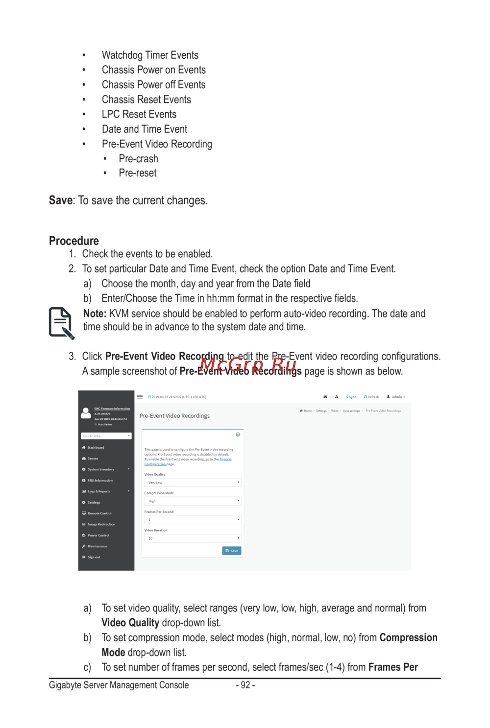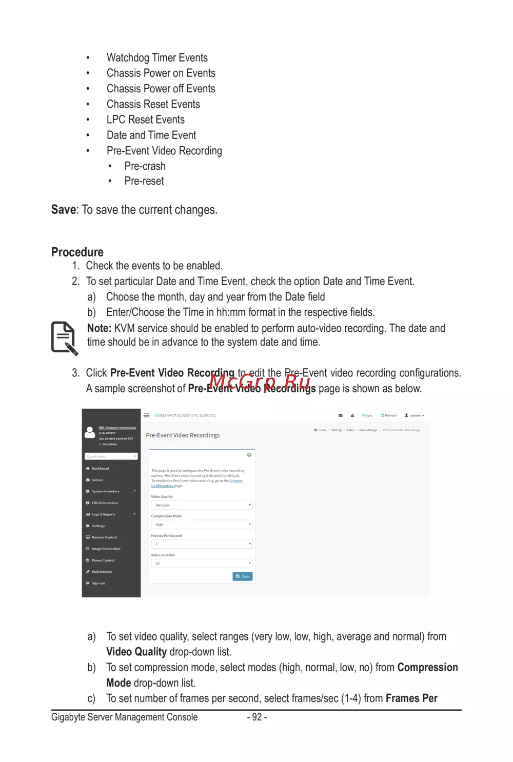 Gigabyte MZ32-AR0 (rev. 1.0) — управление сервером: события и настройки видеозаписи [92/134]