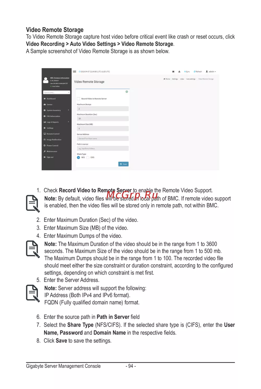 Gigabyte Server Management Console - 94 -