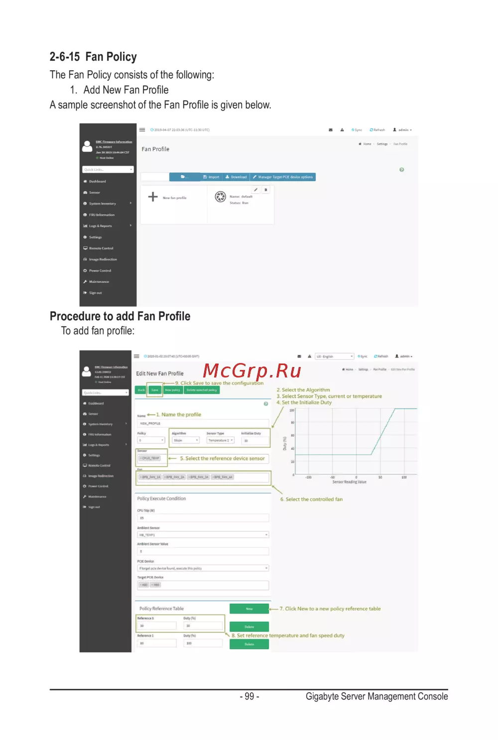 ![Gigabyte MZ71-CE1 (rev. 1.x) [99/134] Procedure to add fan profile](/views2/1679890/page99/bg63.png)