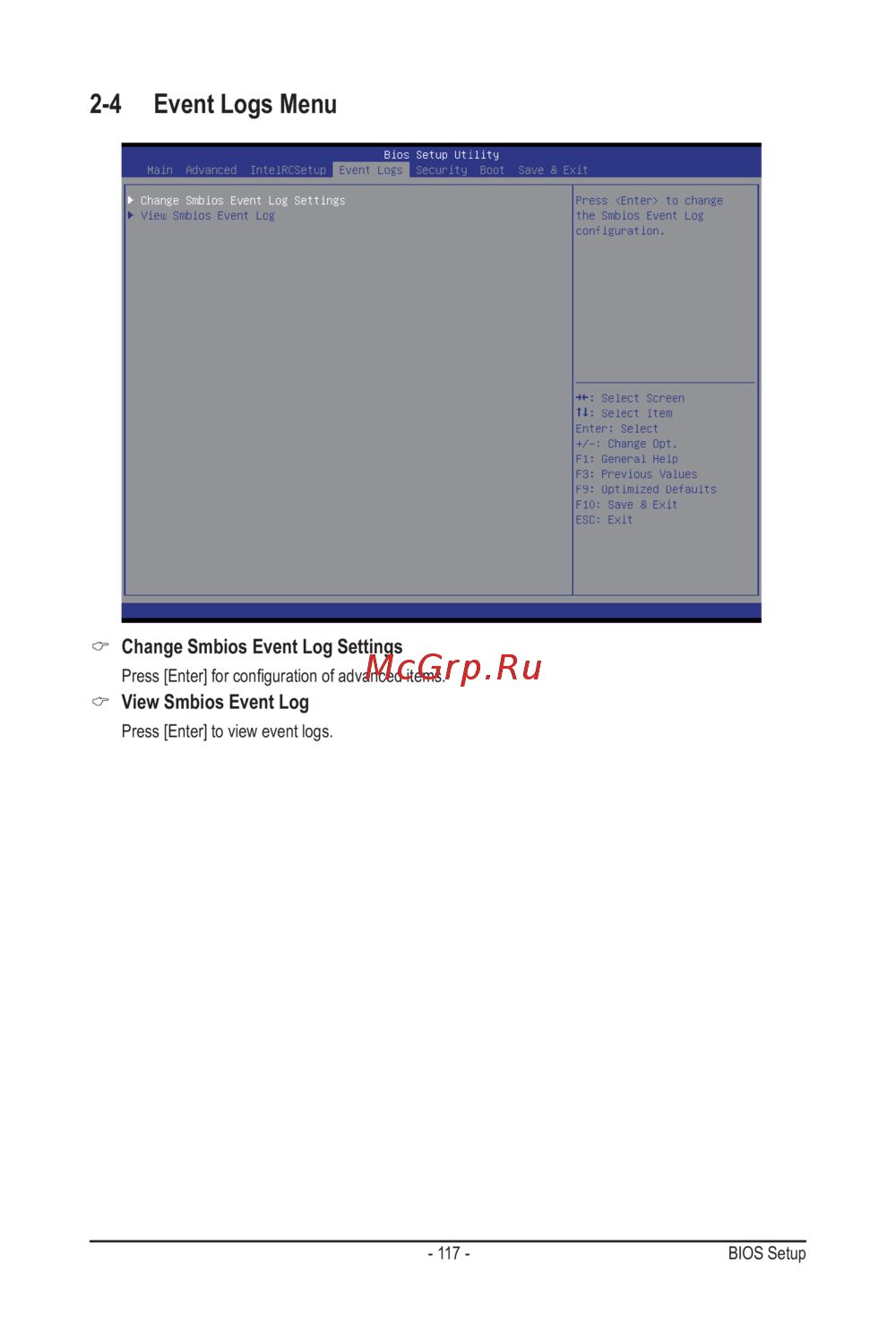 - Change smbios event log settings p.117