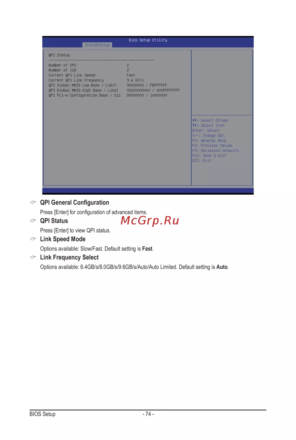 Press [Enter] to view QPI status.