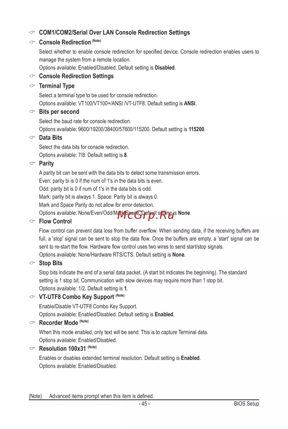 Gigabyte MH70-HD1 (rev. 1.0) — настройки BIOS для консольной редирекции и управления системой [45/114]