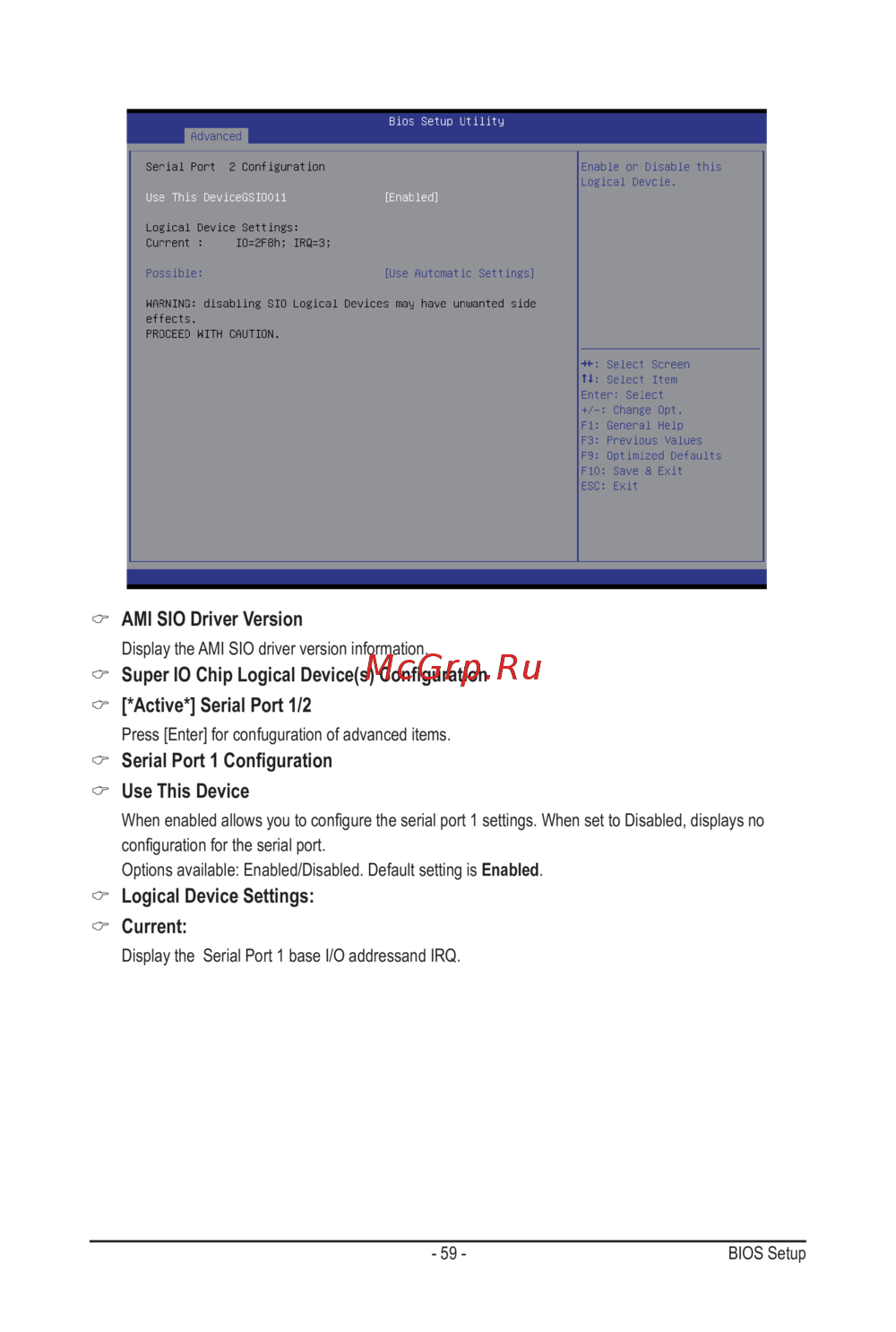 Gigabyte MH70-HD1 (rev. 1.0) — настройки BIOS: Конфигурация последовательного порта и драйвера [59/114]