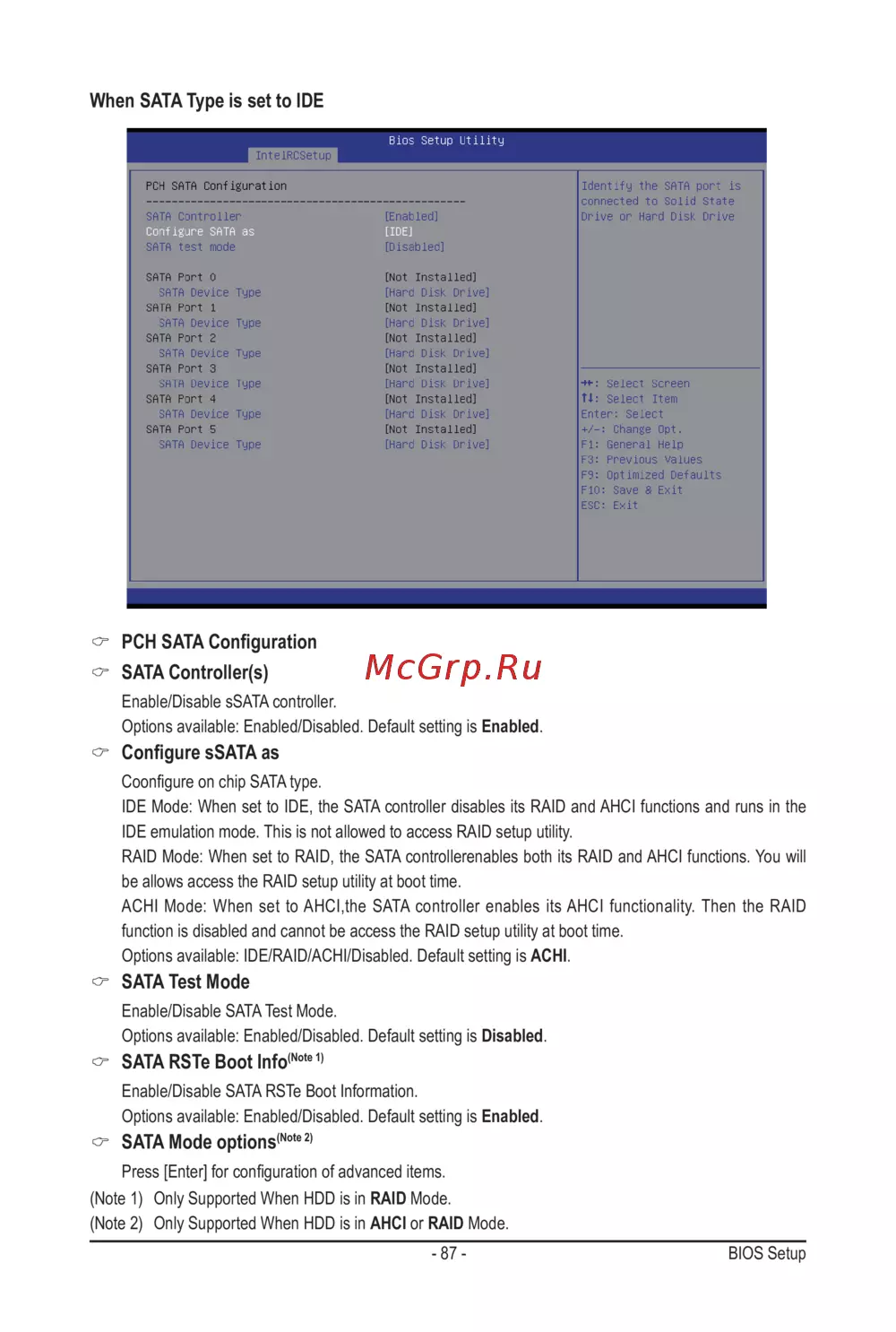 Options available: IDE/RAID/ACHI/Disabled. Default setting is ACHI.
