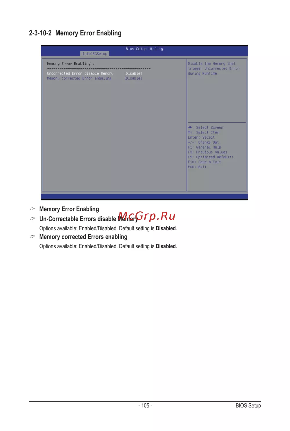 Gigabyte MD60-SC0 (rev. 1.1) [105/127] Memory error enabling un correctable errors disable memory