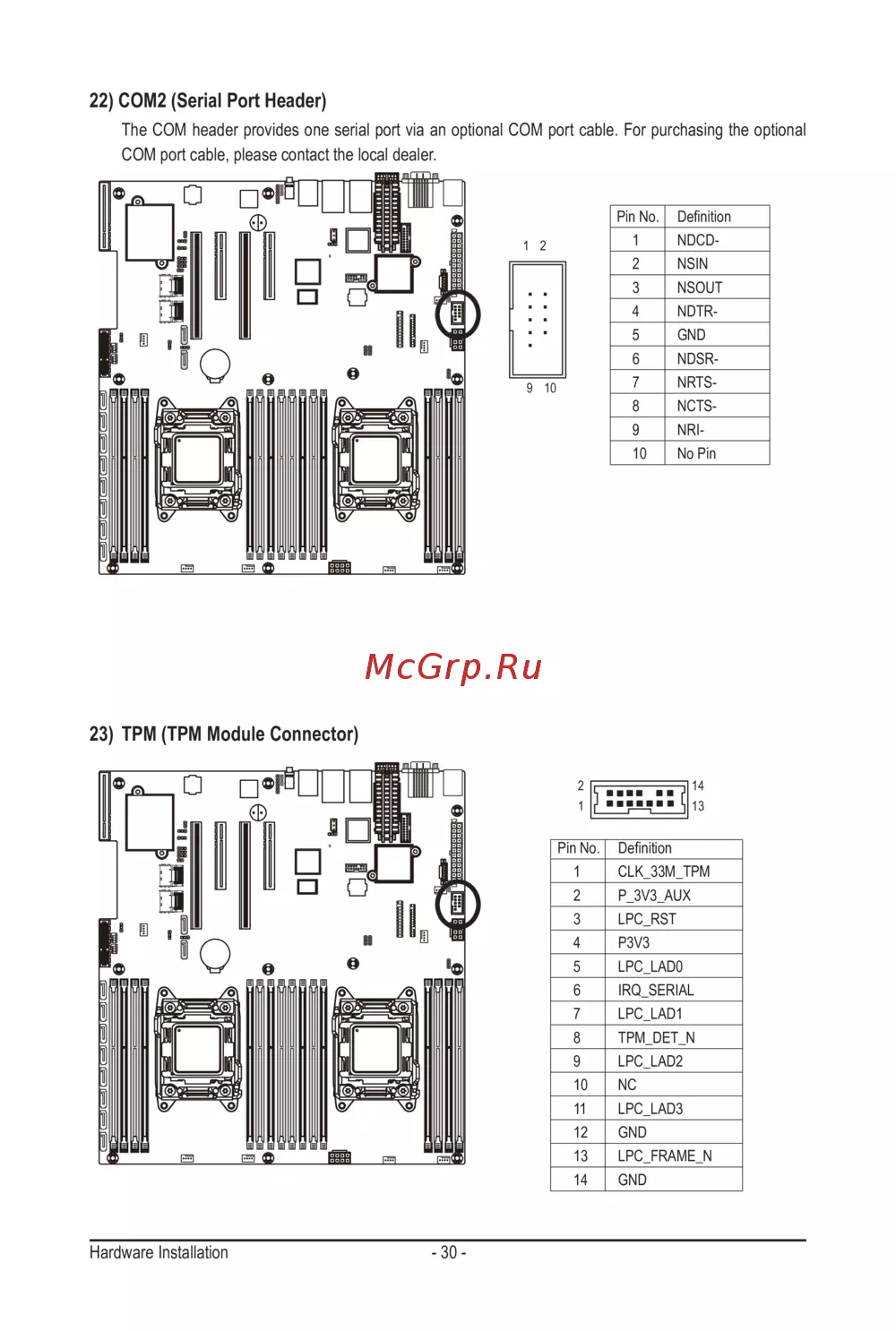 22) COM2 (Serial Port Header)