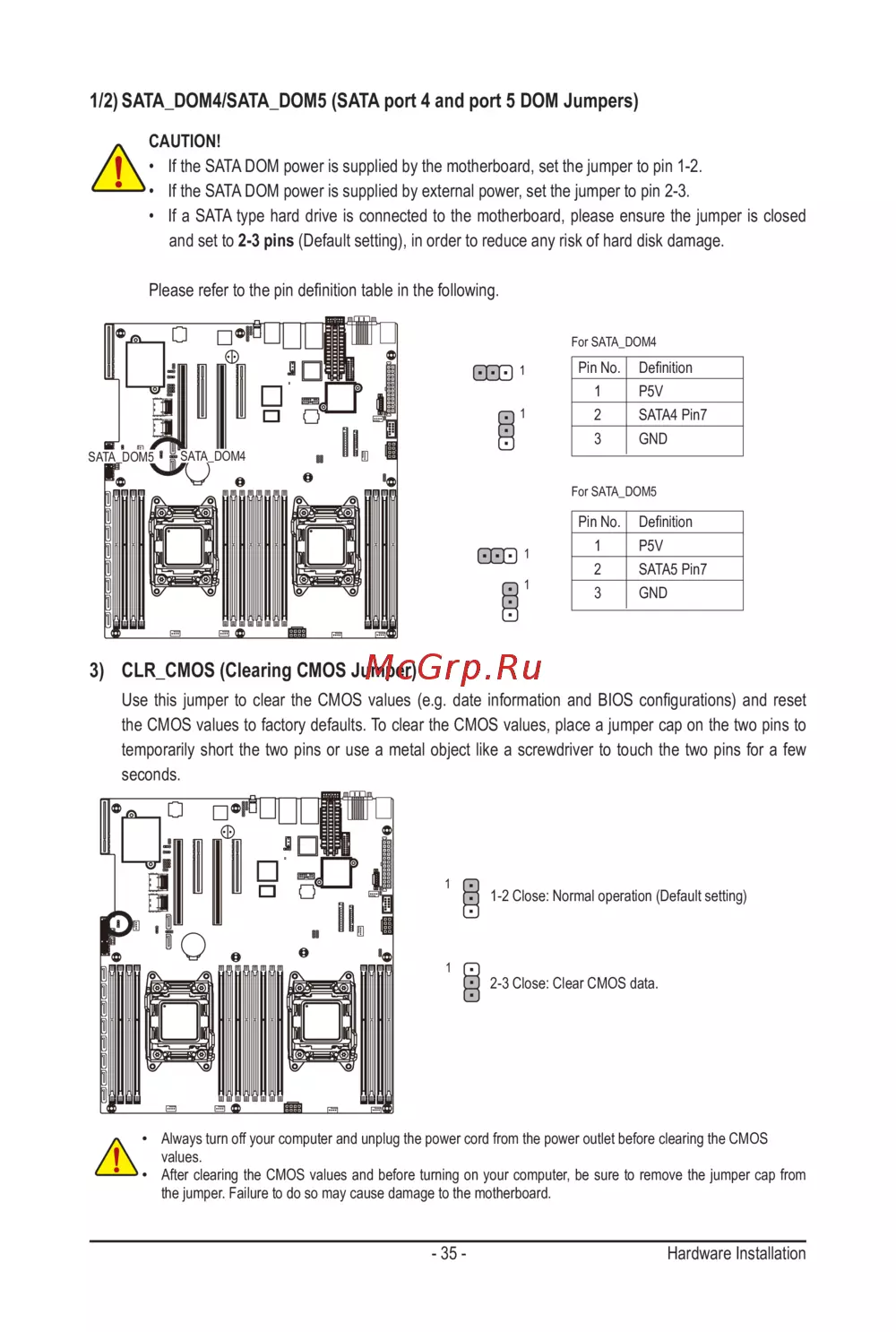 1/2) SATA_DOM4/SATA_DOM5 (SATA port 4 and port 5 DOM Jumpers)