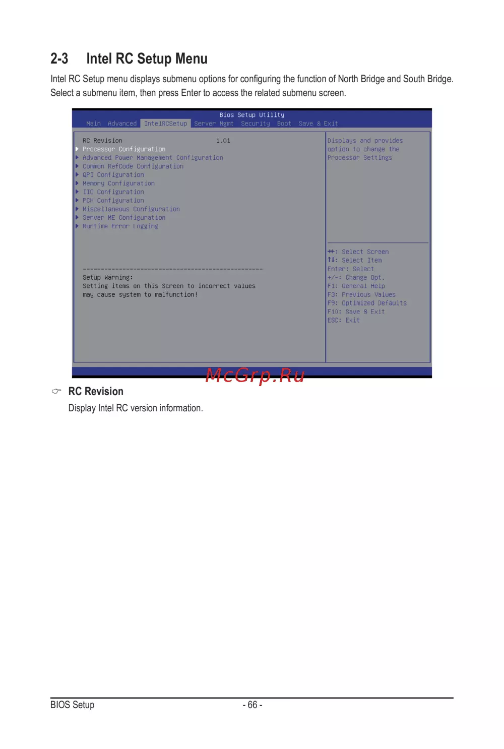 IntelRCSetupmenudisplayssubmenuoptionsforconguringthefunctionofNorthBridgeandSouthBridge.