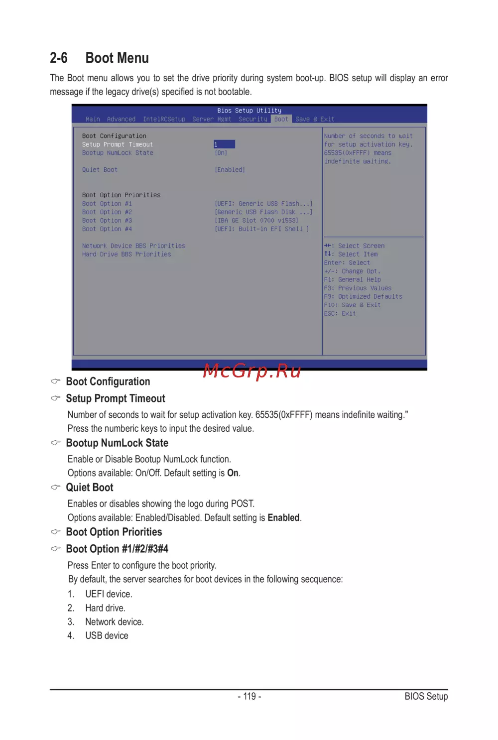 - Boot option 1 2 3 4 p.119
