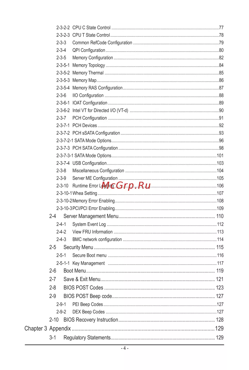 - 6 boot menu 119 2 7 save exit menu 121 2 8 bios post codes 123 2 9 bios post beep code 127 p.4