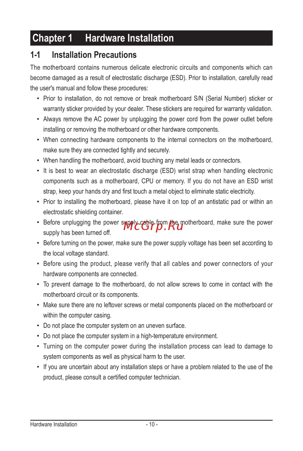 Gigabyte MD80-TM0 (rev. 1.0) — руководство по установке аппаратного обеспечения: предостережения [10/122]