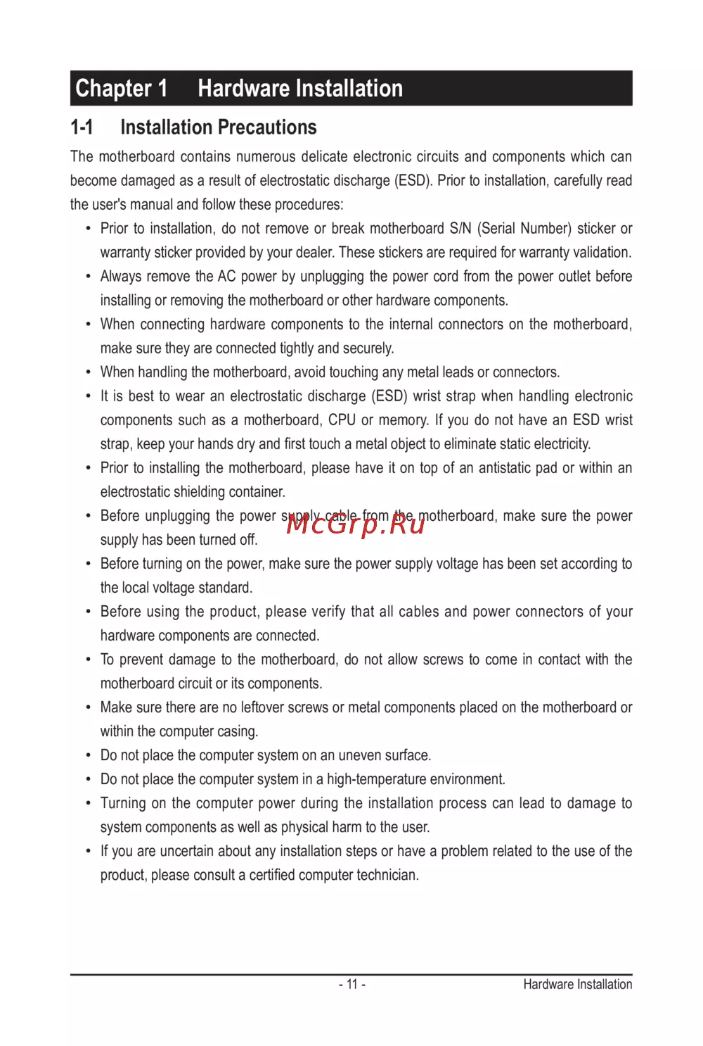 Gigabyte MW50-SV0 (rev. 1.0) — руководство по установке аппаратного обеспечения: советы и предостережения [11/132]