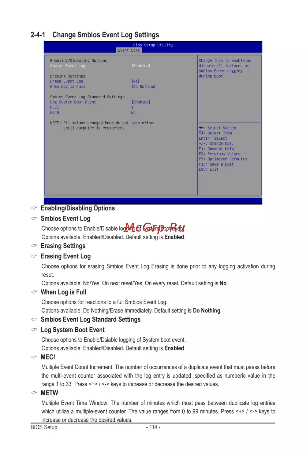 Gigabyte MW50-SV0 (rev. 1.0) — настройки журнала событий Smbios в BIOS: включение и стирание [114/132]
