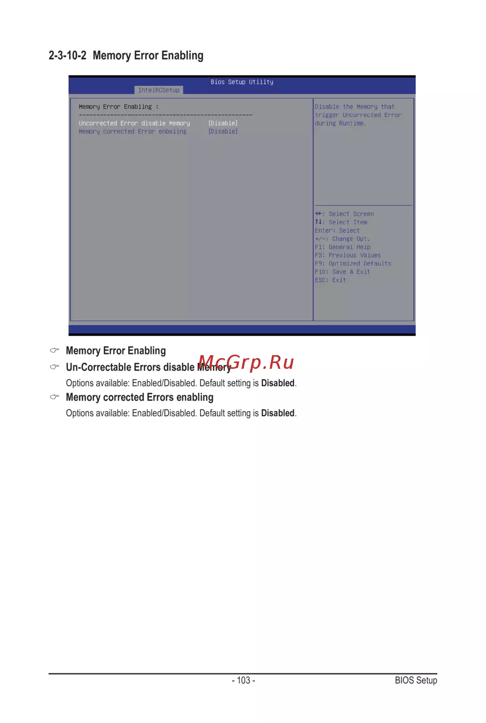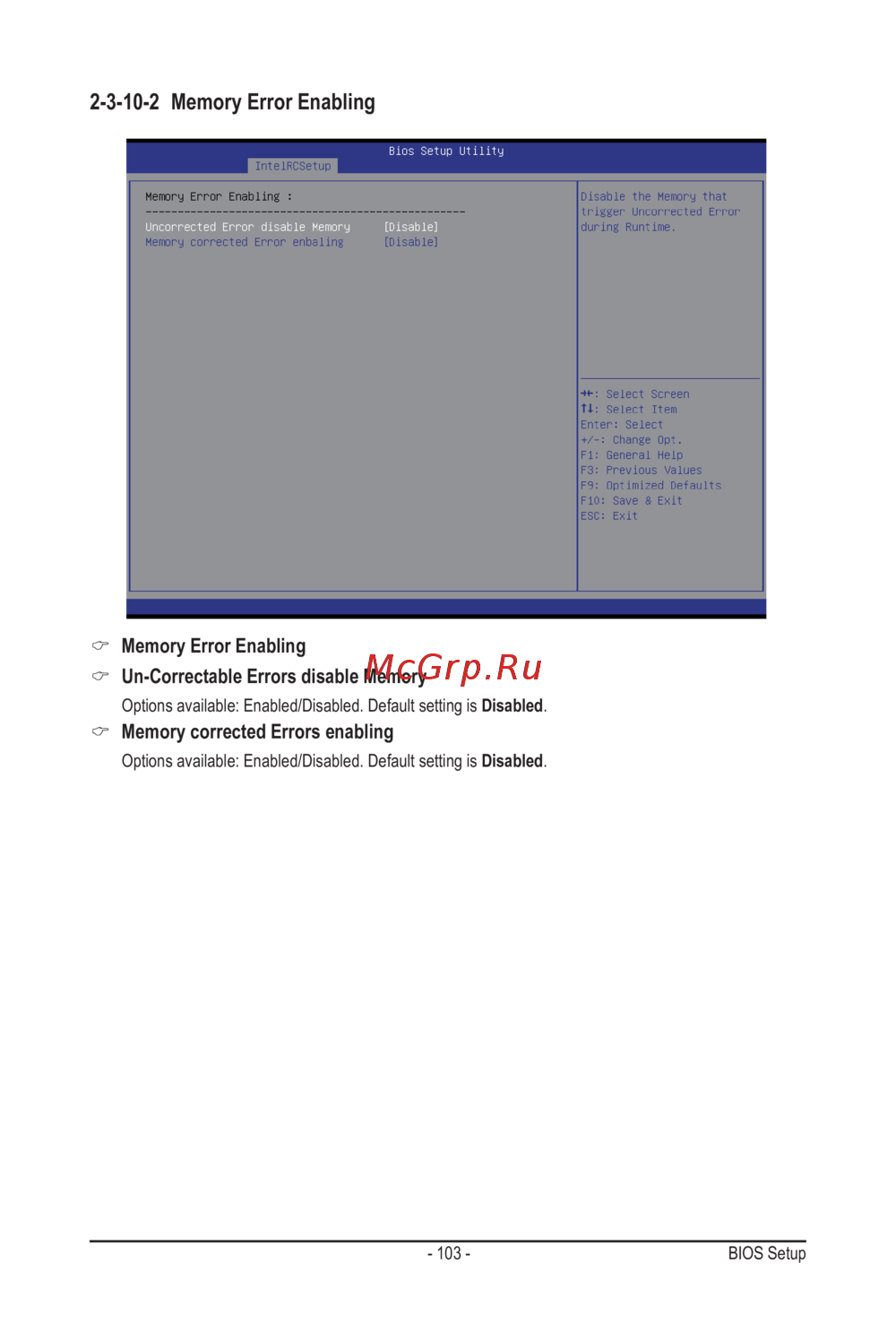 Gigabyte MU70-SU0 (rev. 1.0) [103/125] Memory error enabling un correctable errors disable memory