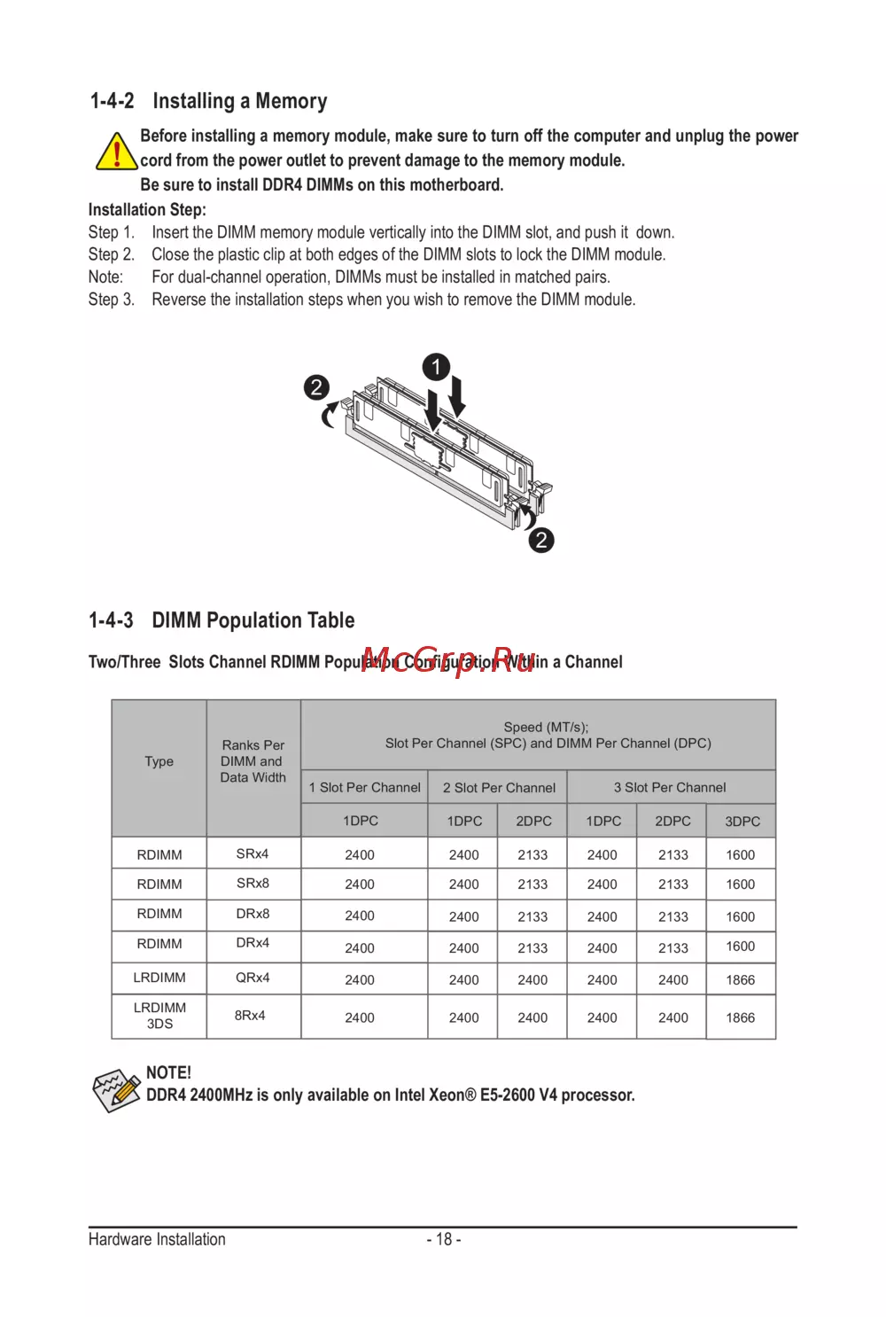 - Note ddr4 2400mhz is only available on intel xeon e5 2600 v4 processor p.18
