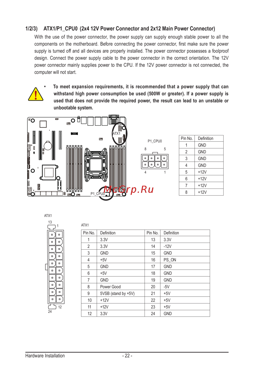 Gigabyte MU70-SU0 (rev. 1.0) [22/125] With the use of the power connector the power supply can supply enough stable power to all the componentsonthemotherboard beforeconnectingthepowerconnector firstmakesurethepower supply is turned off and all devices are properly installed the power connector possesses a foolproof design connect the power supply cable to the power connector in the correct orientation the 12v power connector mainly supplies power to the cpu if the 12v power connector is not connected the computer will not start