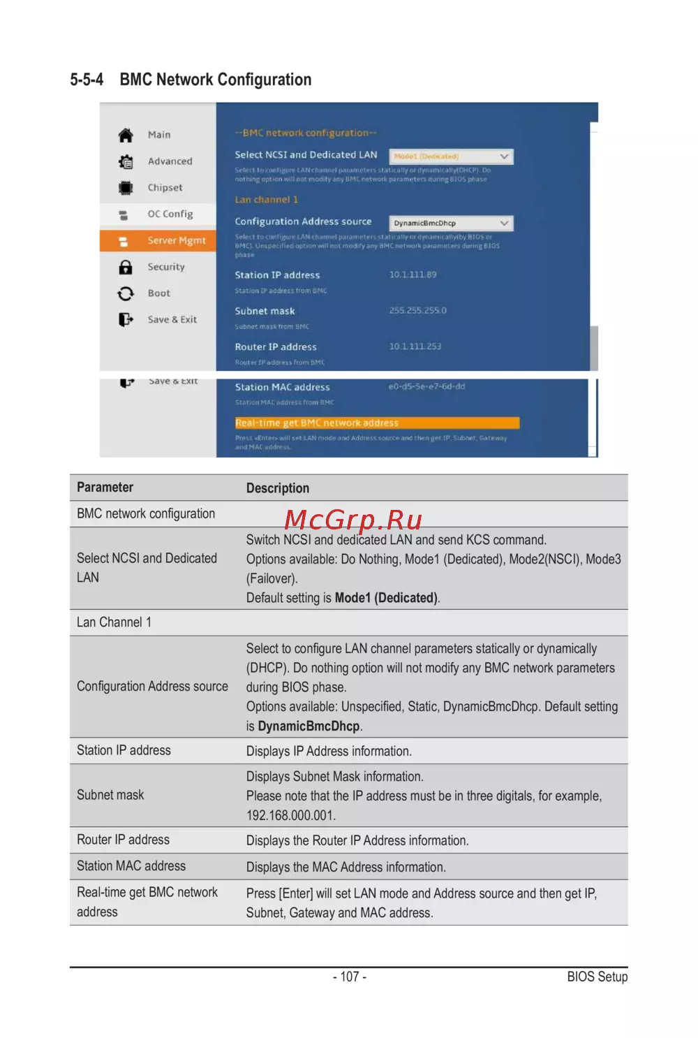 Gigabyte R161-R12 (rev. 100) — настройки сети BMC в BIOS: Конфигурация и параметры [107/123]