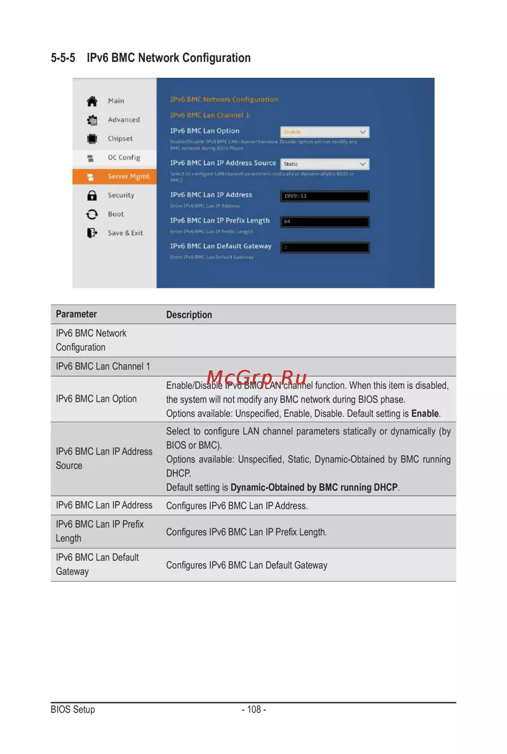 - 5 5 ipv6 bmc network configuration p.108