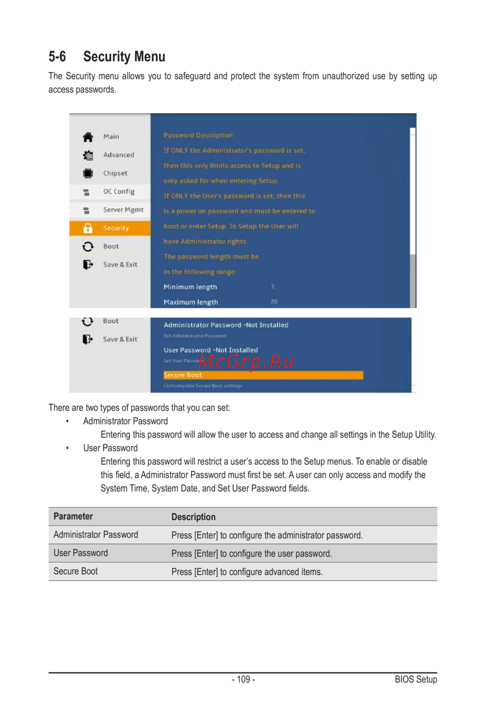 ![Gigabyte R161-R12 (rev. 100) [109/123] 6 security menu](/views2/1680543/page109/bg6d.png)