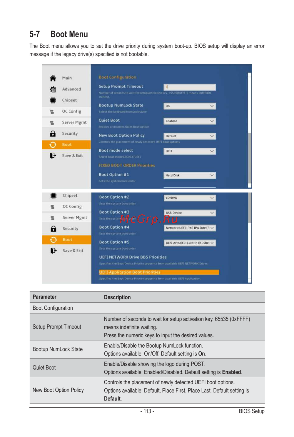 Gigabyte R161-R12 (rev. 100) — настройка BIOS: Управление загрузкой и параметрами системы [113/123]
