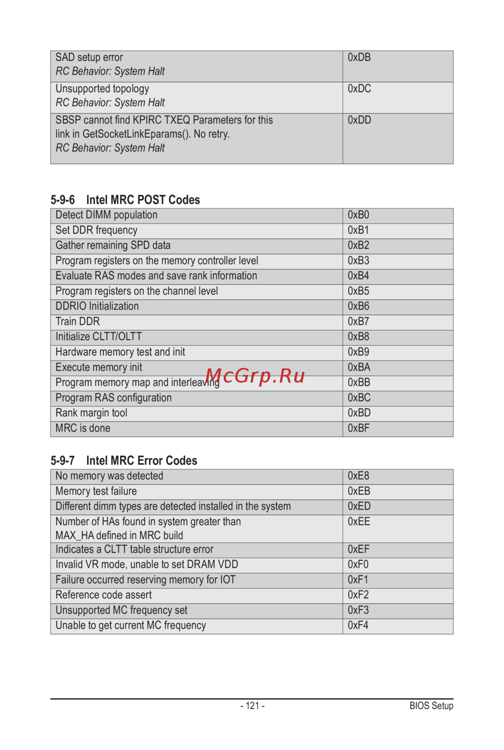 Gigabyte R161-R12 (rev. 100) [121/123] 9 7 intel mrc error codes