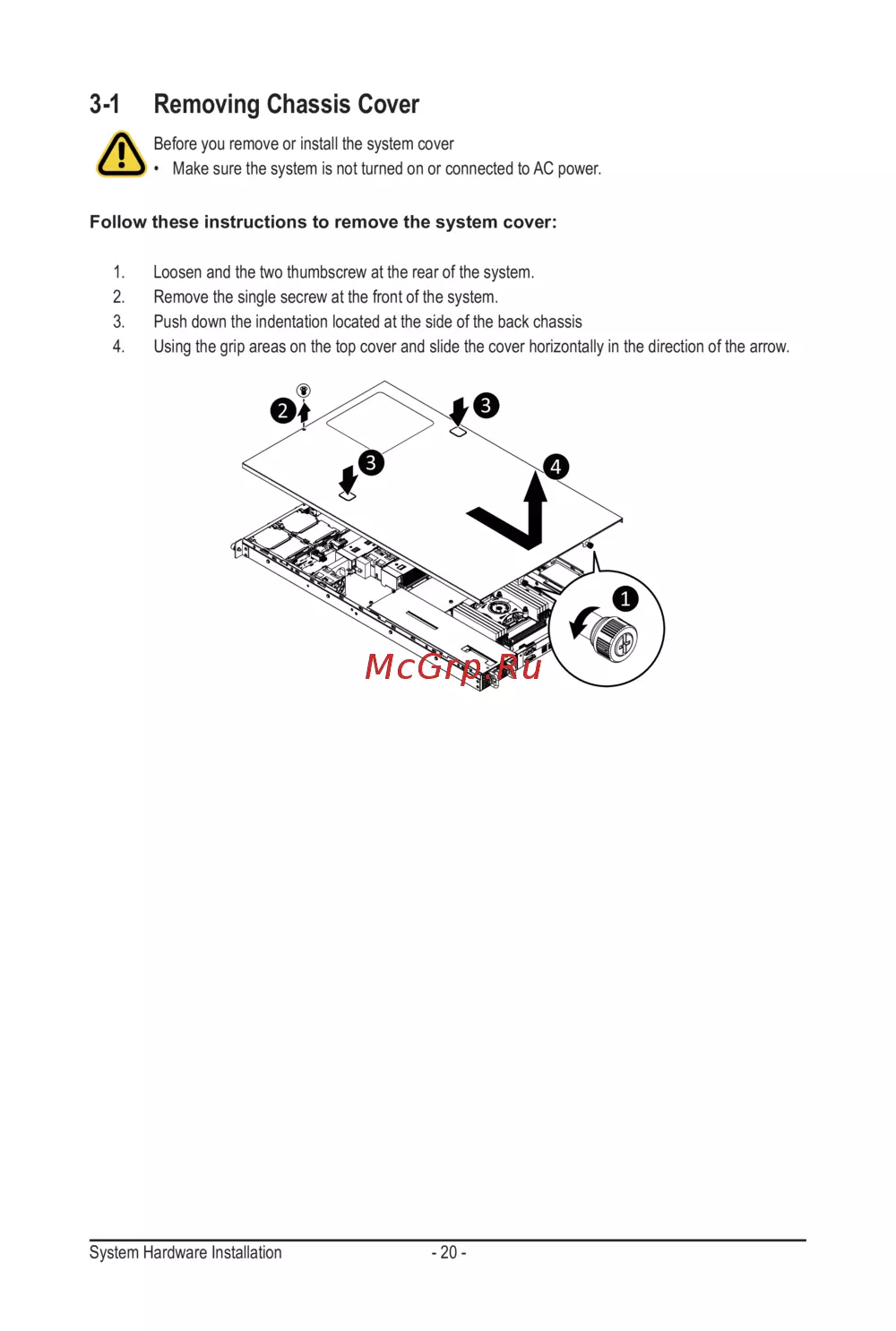 Gigabyte R161-R12 (rev. 100) [20/123] 1 removing chassis cover