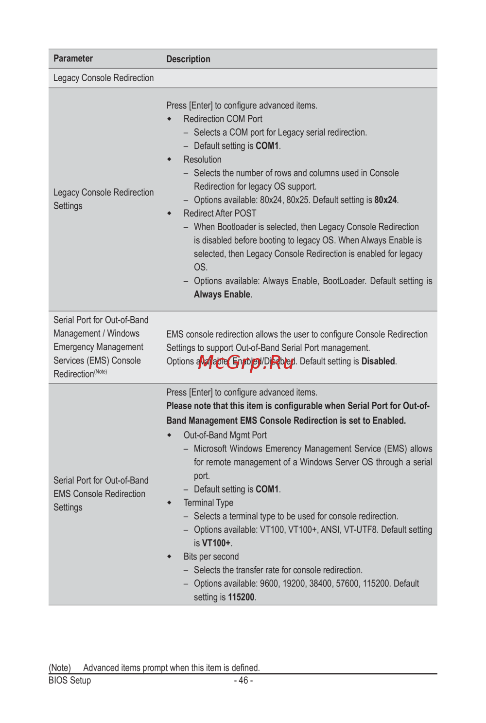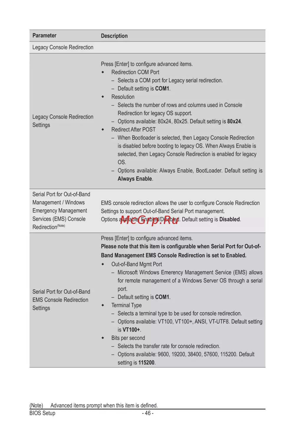 Please note that this item is congurable when Serial Port for Out-of-