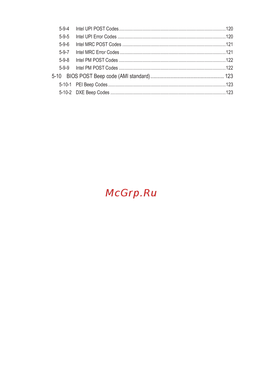 5-9-9 Intel PM POST Codes ..........................................................................................122