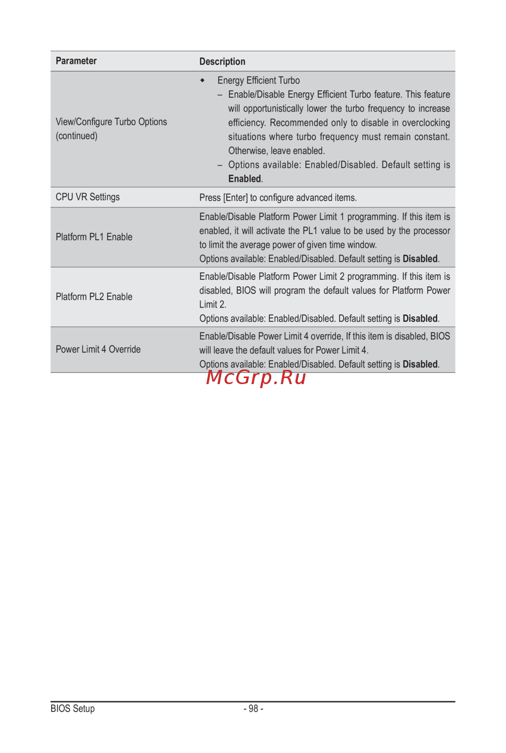 – Enable/Disable Energy Efcient Turbo feature. This feature
