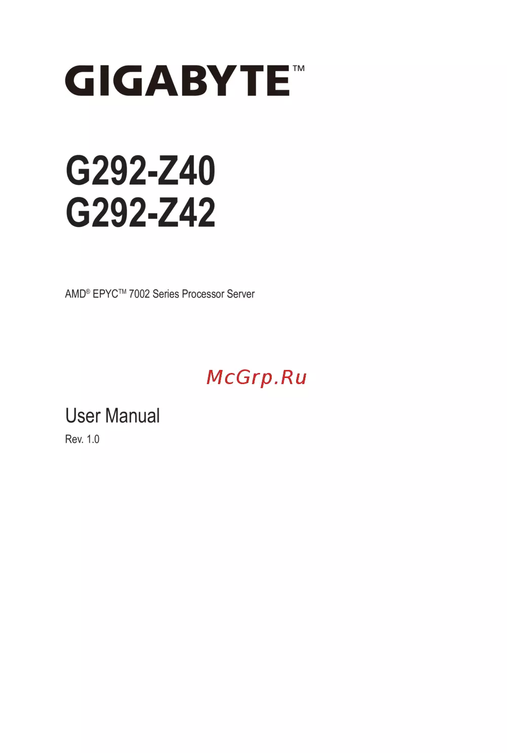 Gigabyte G292-Z42 (rev. 100) Инструкция онлайн