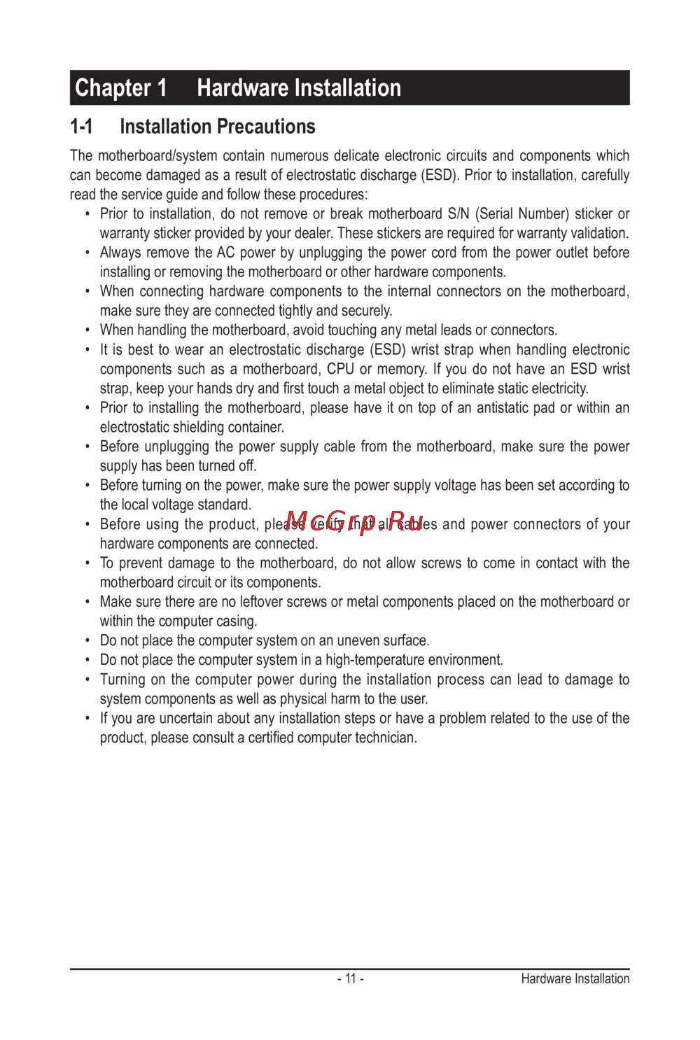 Gigabyte G292-Z42 (rev. 100) — руководство по установке аппаратного обеспечения: советы и предостережения [11/155]