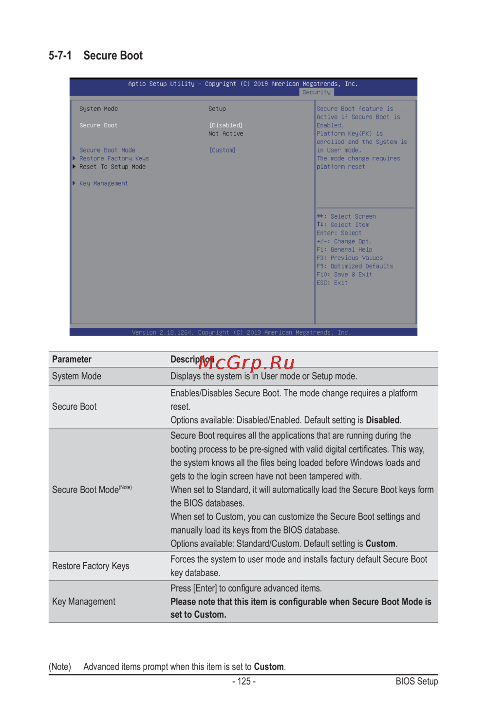 Gigabyte G292-Z42 (rev. 100) — настройки BIOS: Параметры Secure Boot и управление ключами [125/155]