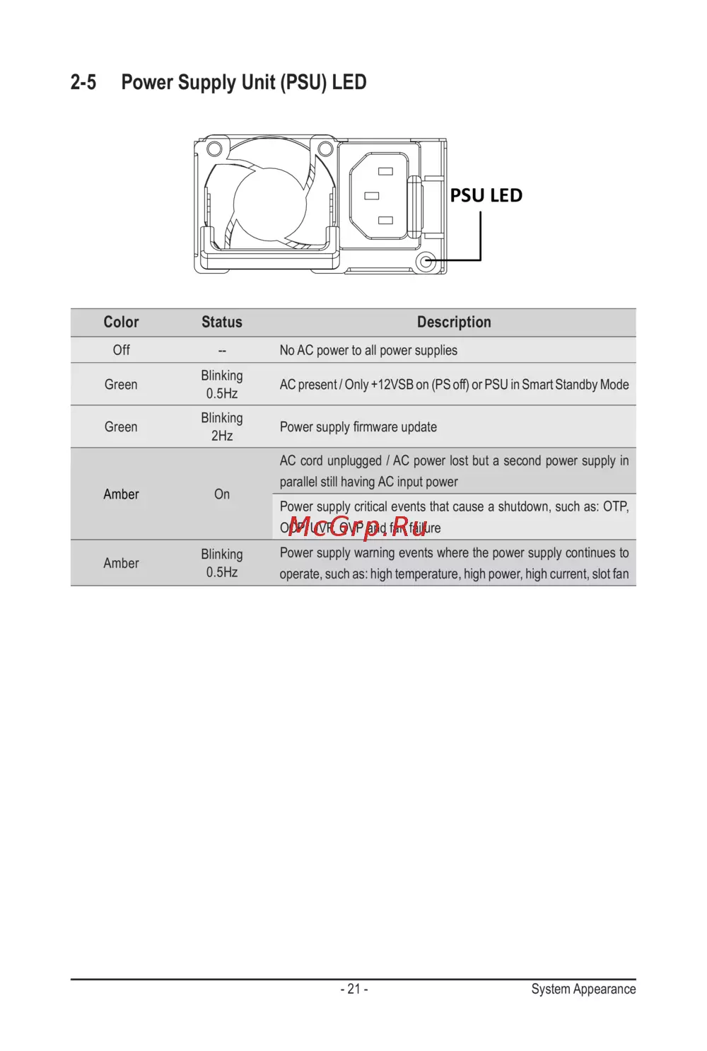 2-5 Power Supply Unit (PSU) LED