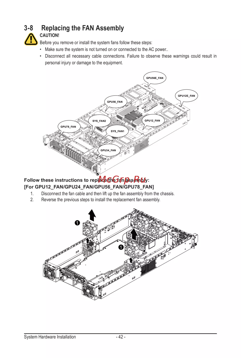 Gigabyte G292-Z42 (rev. 100) [42/155] 8 replacing the fan assembly