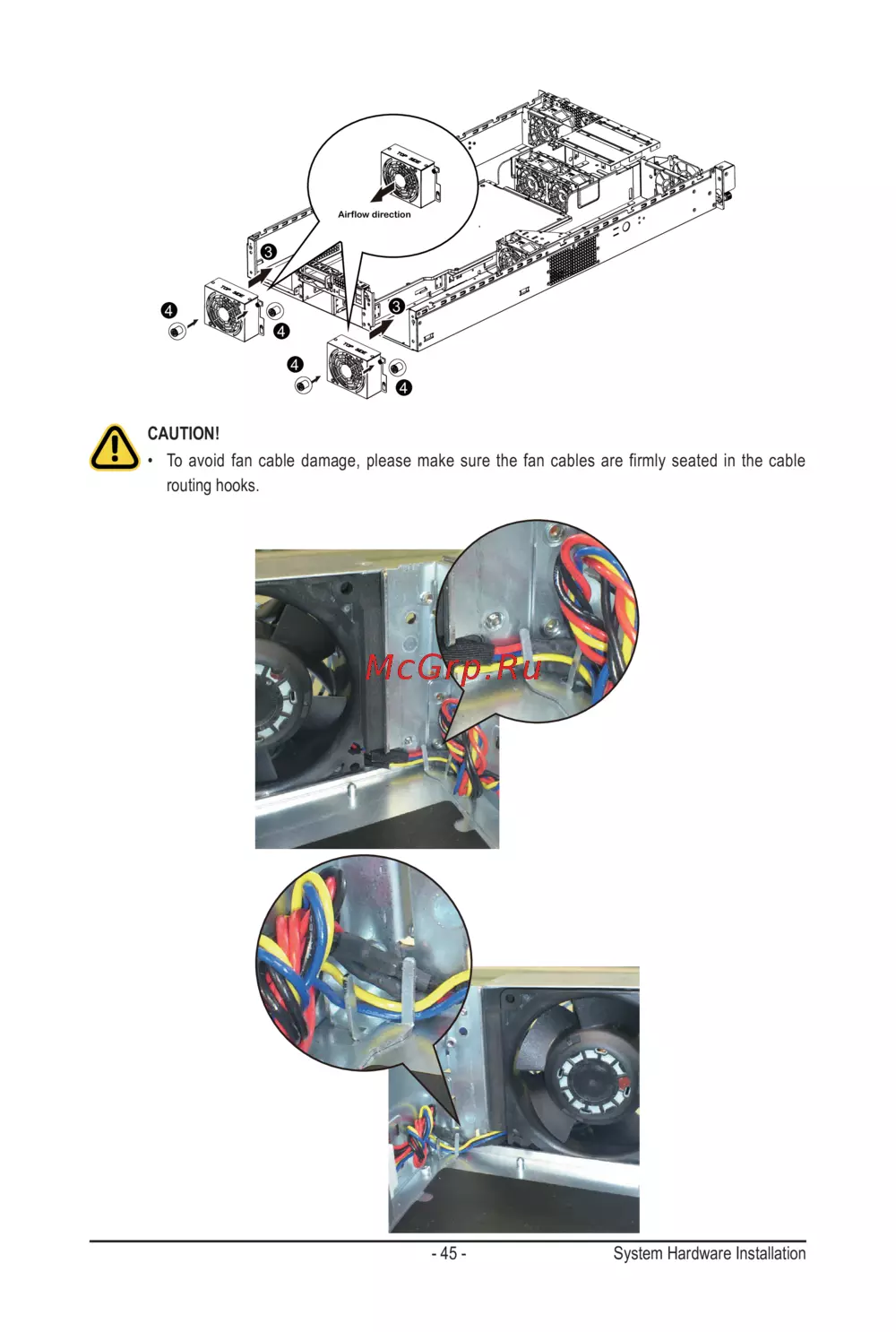 Gigabyte G292-Z42 (rev. 100) [45/155] Caution to avoid fan cable damage please make sure the fan cables are firmly seated in the cable routing hooks
