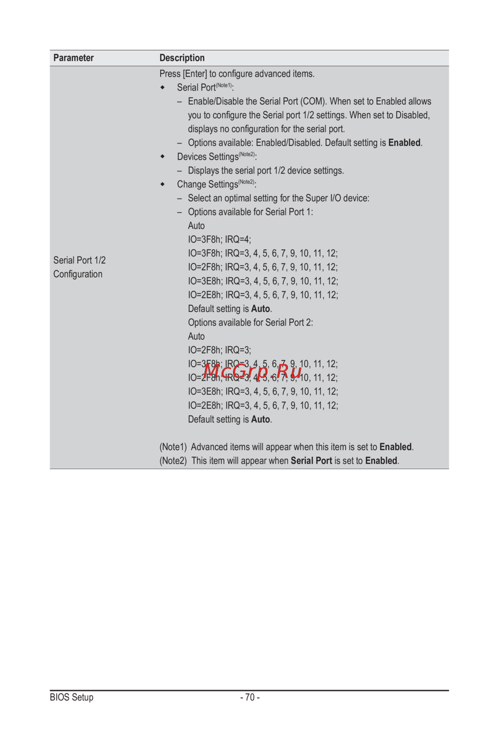 (Note2) This item will appear when Serial Port is set to Enabled.