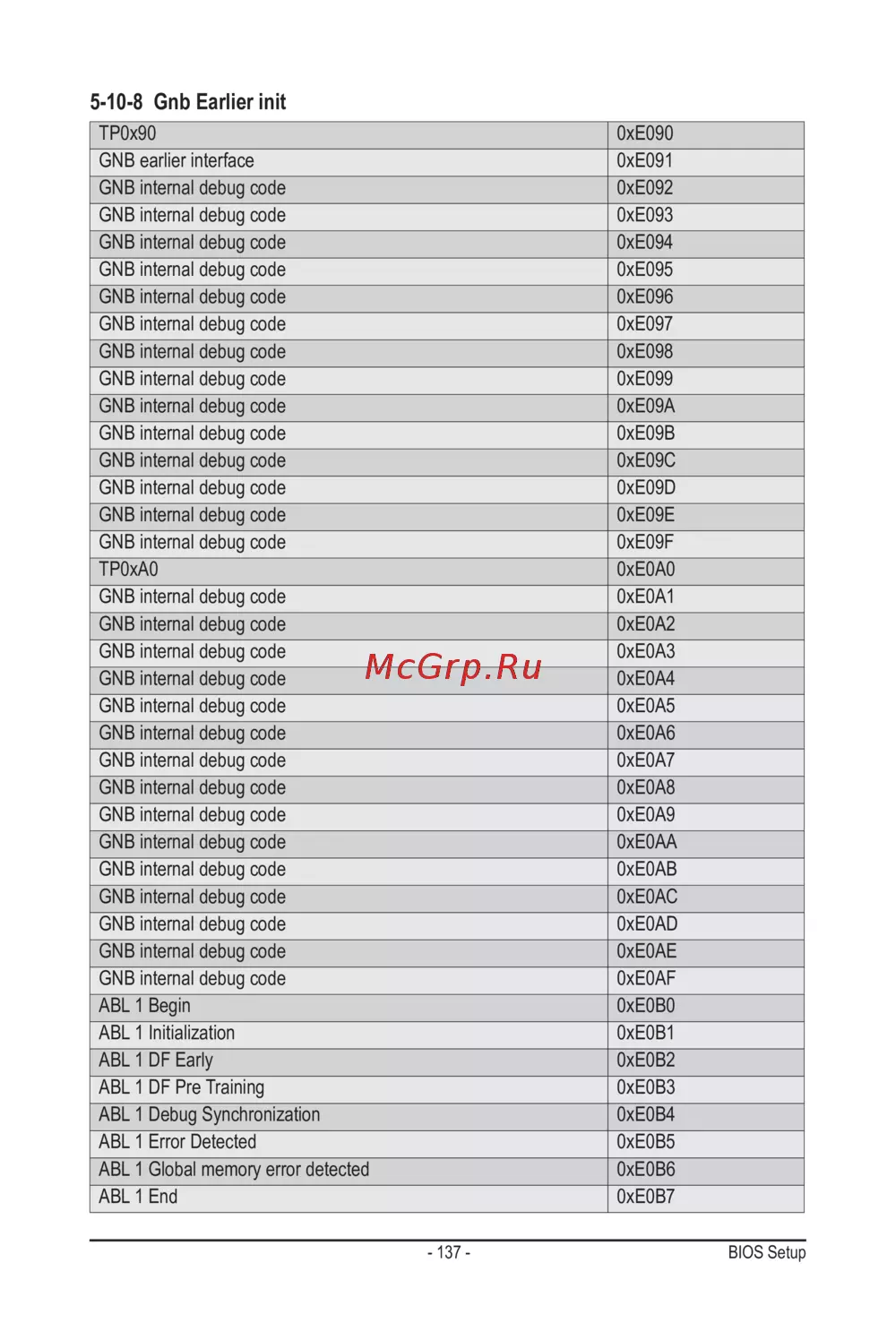 GNB internal debug code 0xE0AC