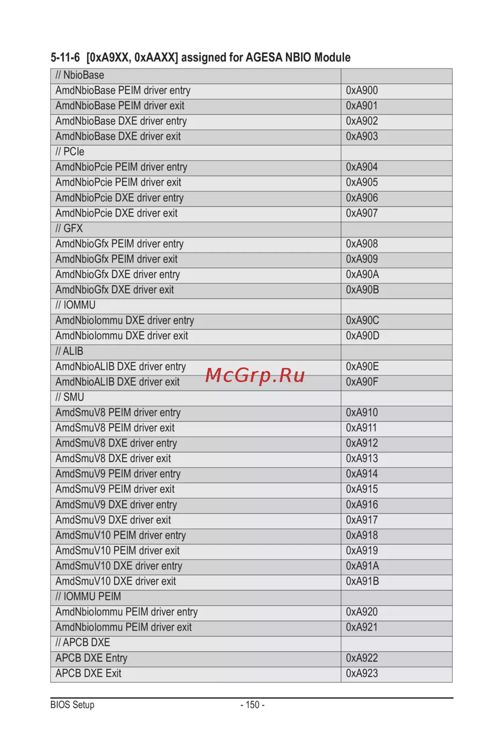 - 11 6 0xa9xx 0xaaxx assigned for agesa nbio module p.150