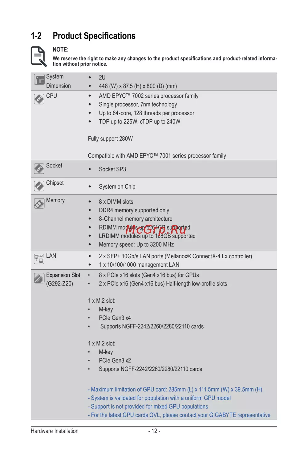 Gigabyte G292-Z24 (rev. 100) [12/138] 2 product specifications