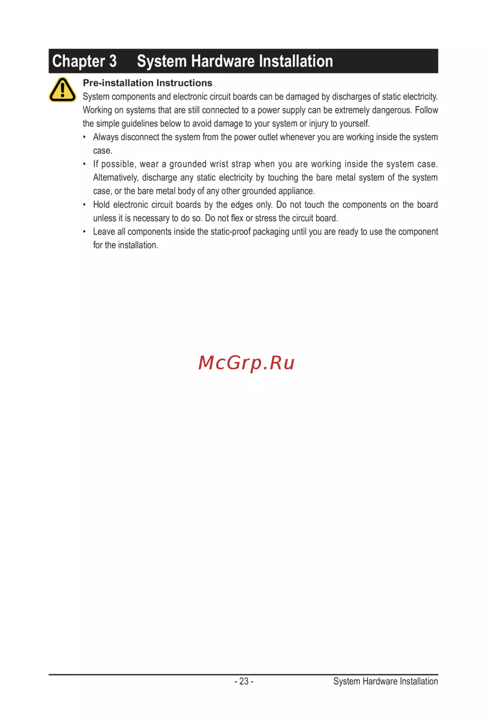 - Chapter 3 system hardware installation p.23
