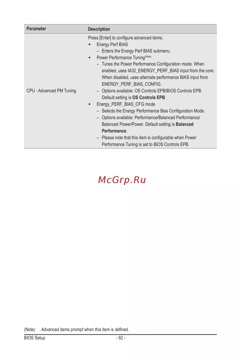 – Selects the Energy Performance Bias Conguration Mode.