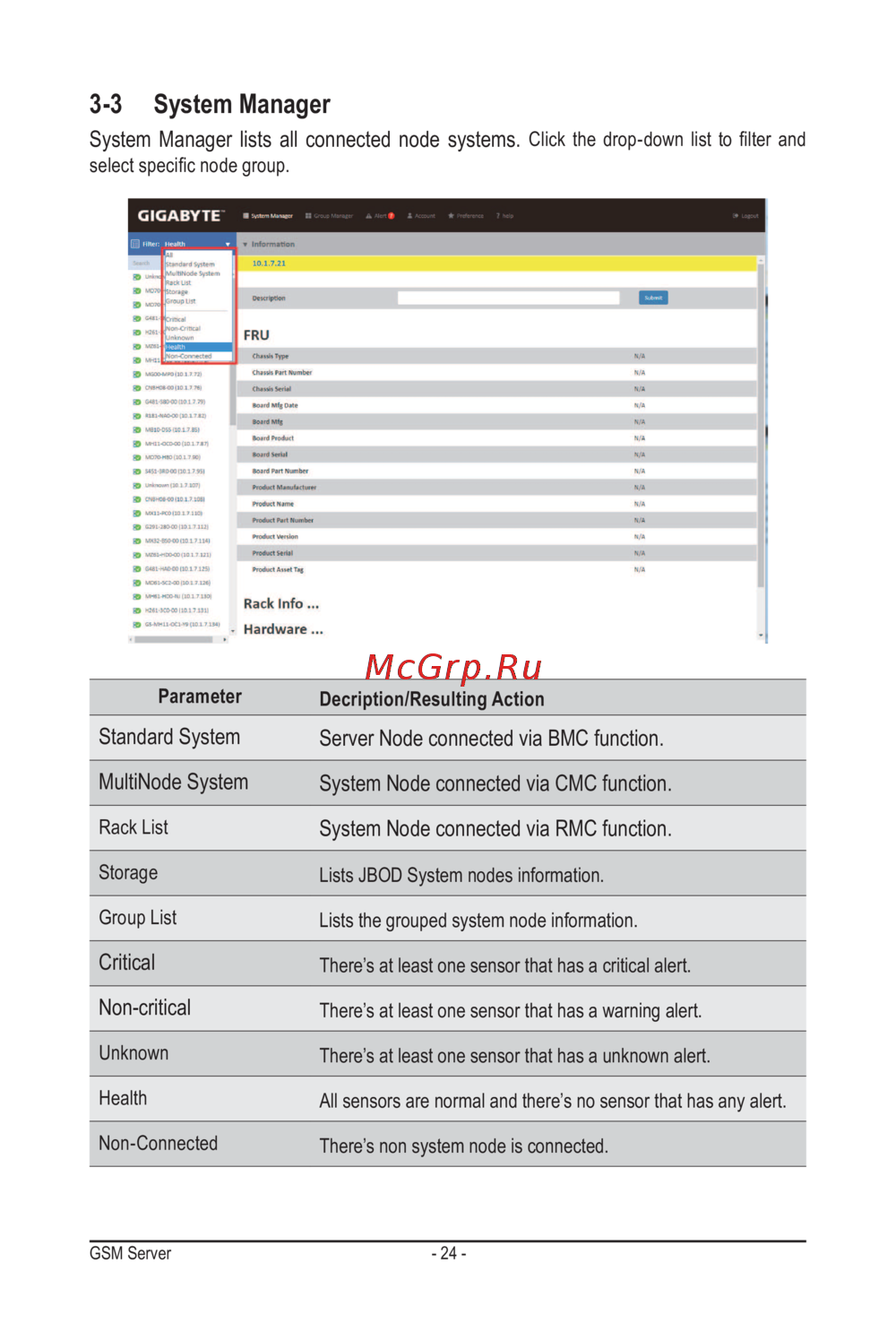 - Standard system server node connected via bmc function p.24